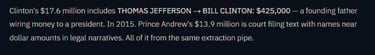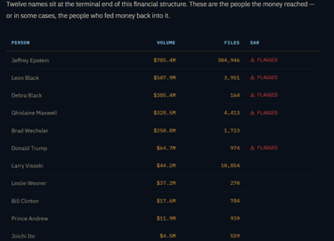However, what really captured readers' attention was the key persons table, which incorrectly included the names of Donald Trump, Bill Clinton, and Prince Andrew and attributed transactions totalling $64.7M, $17.6M, and $11.9M to them, respectively. Within hours, however, significant revisions were made, and these three names disappeared from the table entirely (Version Two).