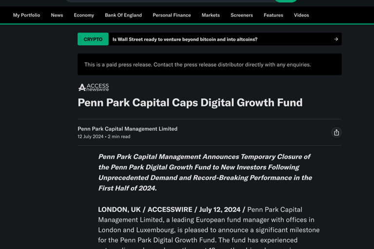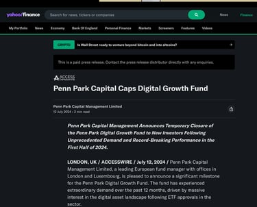 Yahoo Finance ingests feeds from those wires, and the fake Penn Park Capital Management release received instant amplification.